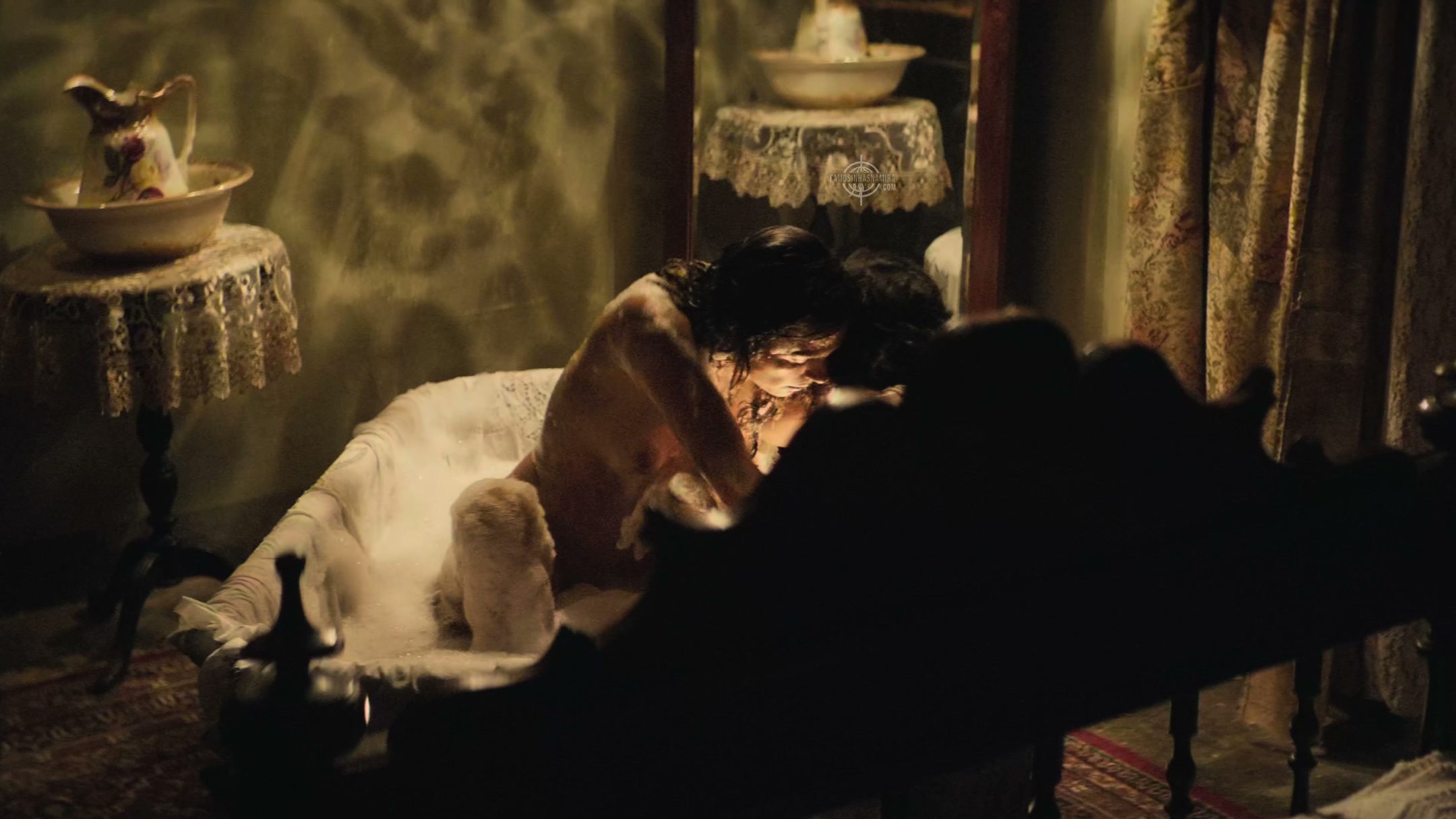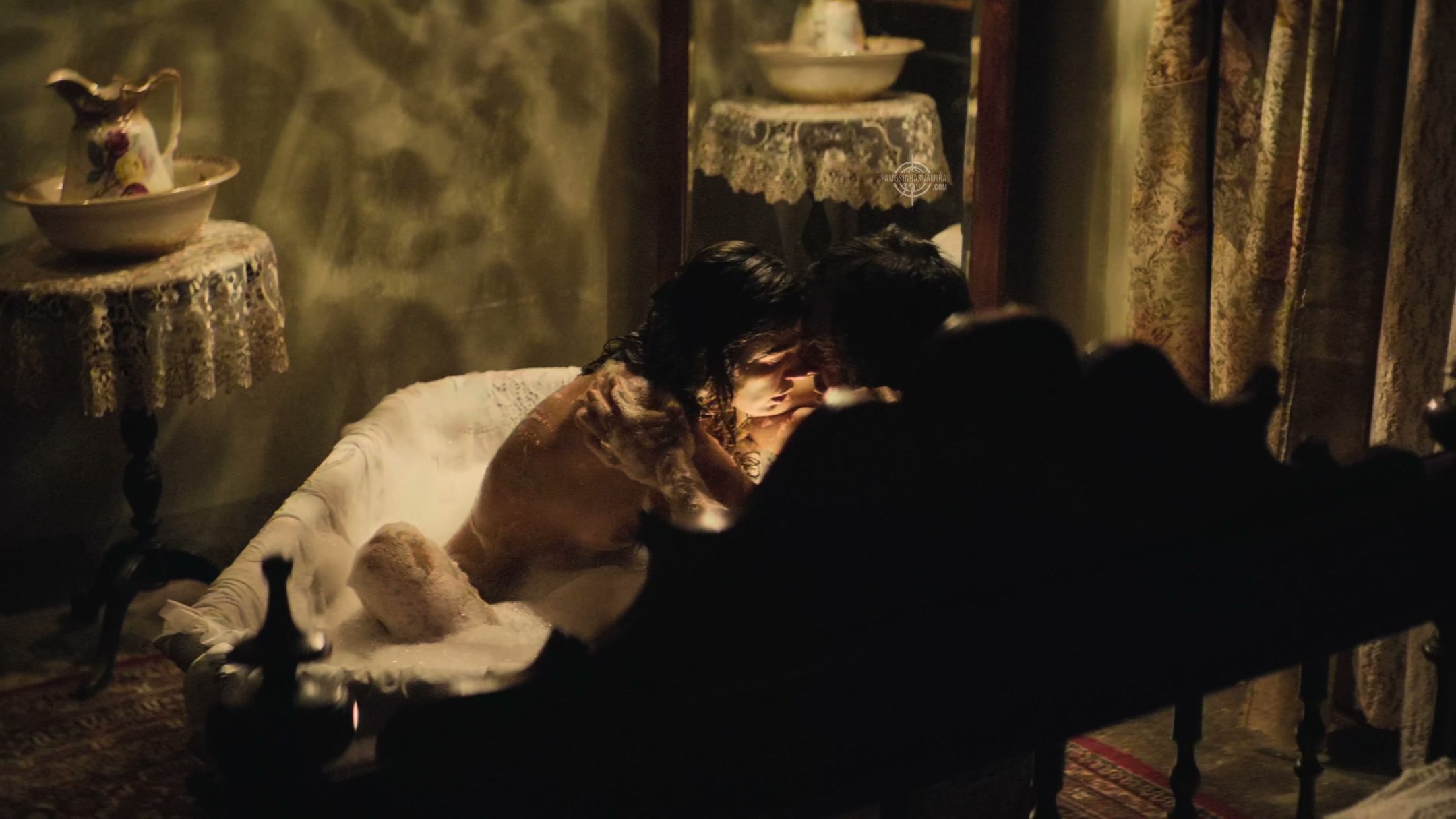 Alicia Vikander nua na banheira e Elizabeth Olsen com vestido transparente saindo do mar no filme “The Assessment”. E +: no filme “Eden”, surgiram fotos de Ana De Armas com os seios visíveis numa regata transparente molhada.